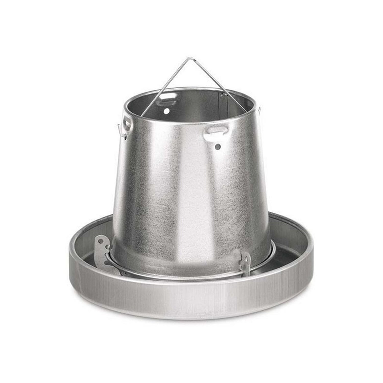 A metal hanging feeder. Anti-waste ring can be purchased separately. Available in 5kg and 10kg